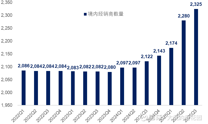 除此之外,今年第三季度的经销商数量还在增长,目前的境内的经销商数量已经达到2325家。跟之前几个季度一样,第三季度增加的经销商都是系列酒经销商,茅台酒经销商的数量没有变化。今年茅台1935终端销售表现比较亮眼,估计业内人士也看的很清楚,对茅台系列酒招商是一个好事。