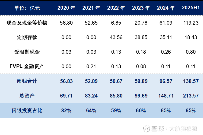 泡泡玛特账面上的现金类资产主要体现在四个财报科目中:现金及现金等价物、定期存款、受限制现金、按公平值计入损益的金融资产(流动资产部分)。现金类资产在泡泡玛特资产中的占比非常高,近几年基本都在60%以上。这说明,泡泡玛特的日常经营给公司留下了大量闲钱。
