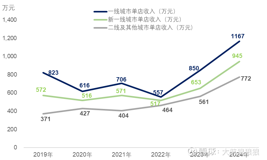 结合前面提到的门店数量表现,不难发现,线下门店单店收入的提高是非常重要的收入驱动因素。泡泡玛特各线城市的门店收入,也正是在2023年以后才出现的显著增长: