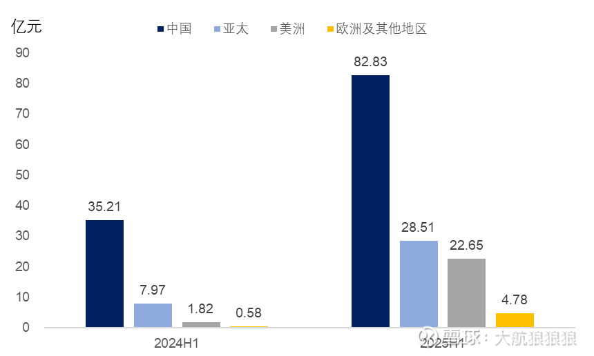 接下来,我们可以对比2024年上半年和2025上半年的表现,需要注意的是2025年泡泡玛特调整了一次全球各区域的分类口径。对比2025年上半年各区域的业绩增速,中国区受到Labubu热潮的影响暂未完全体现,收入增速为135%;由于东南亚爆发时间早,亚太区的Labubu热度在2025年上半年比2024年下半年已经低了很多,2025年上半年收入同比增速为258%。