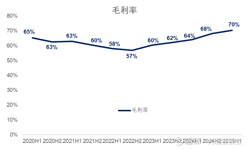 2024年以来,泡泡玛特的毛利率开始提升,2025年上半年突破了70%,这里的主要驱动因素是国际市场占比提升。以2024年年报为例,泡泡玛特在中国内地的毛利率只有63.9%,跟港股上市时并没有明显差异;而海外市场毛利率为71.3%,明显高于内地。
