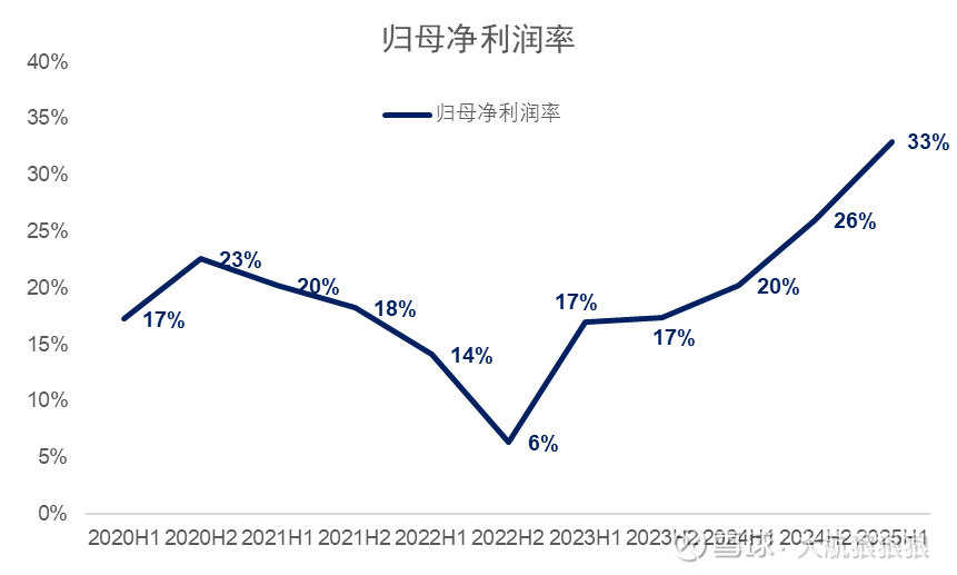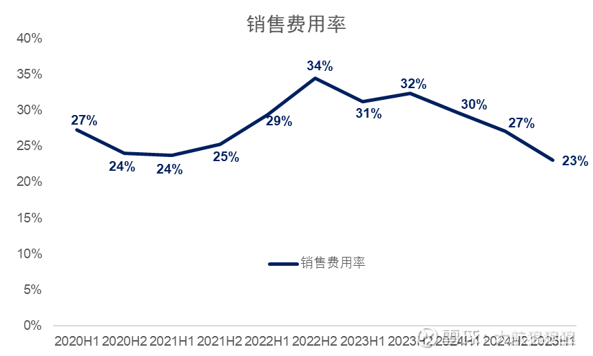 销售费用率的历史波动也能证明这一点,观察上市以来泡泡玛特的销售费用率,在2020年底至2021年的“国内小巅峰期”,泡泡玛特销售费用率低至24%左右。在此后的低谷期,泡泡玛特销售费用率上升至30%以上。直至2024年下半年,海外热度爆发后,客流从不饱和再次转入饱和,低费用率的线上收入占比也在提升,所以销售费用率再次下降,2025年上半年达到了近年来最低点。