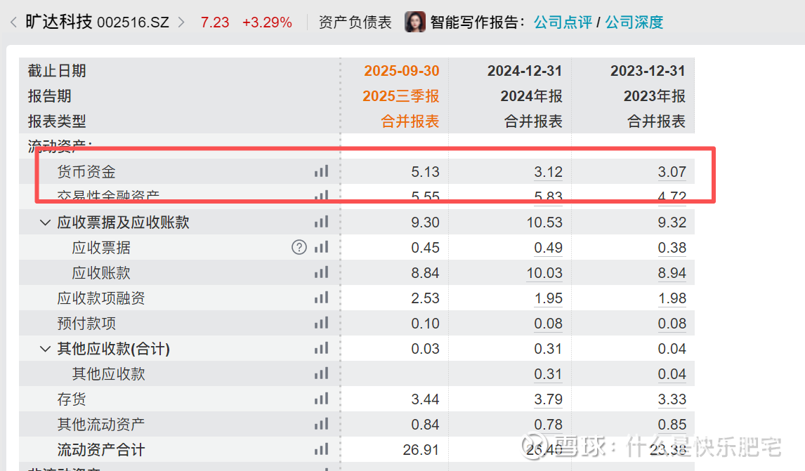 资本是企业发展的“活水”,而充裕的现金流与强劲的融资能力,更是股民布局的核心底气。据旷达科技2025年三季报披露,公司货币资金已达5.13亿元,较期初增长64.28%,叠加可交易金融资产后,合计金额超10亿元,资金储备充裕。