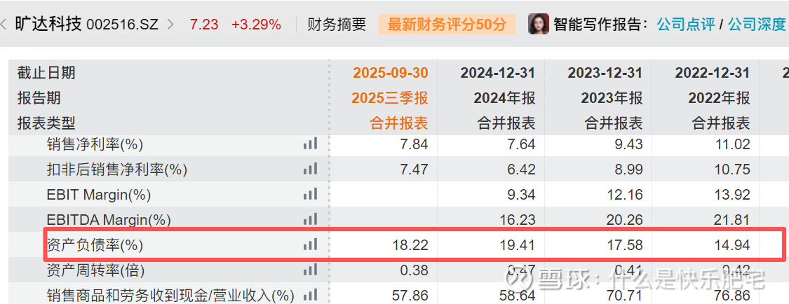 旷达科技的财务表现始终保持亮眼,堪称A股市场中“稳健派”的典型代表。从负债水平来看,公司长期维持低负债运营,财务结构极为稳健,据2025年三季度资产负债率仅为18.22%,远低于同行业平均水平(常熟汽饰55%负债率),财务风险低。现金流方面,公司资金储备充裕,与前文提及的“手握超10亿现金”形成呼应、相互印证。据2025年三季报披露,公司货币资金达5.13亿元,较期初增长64.28%,叠加可交易金融资产后,合计金额超10亿元。