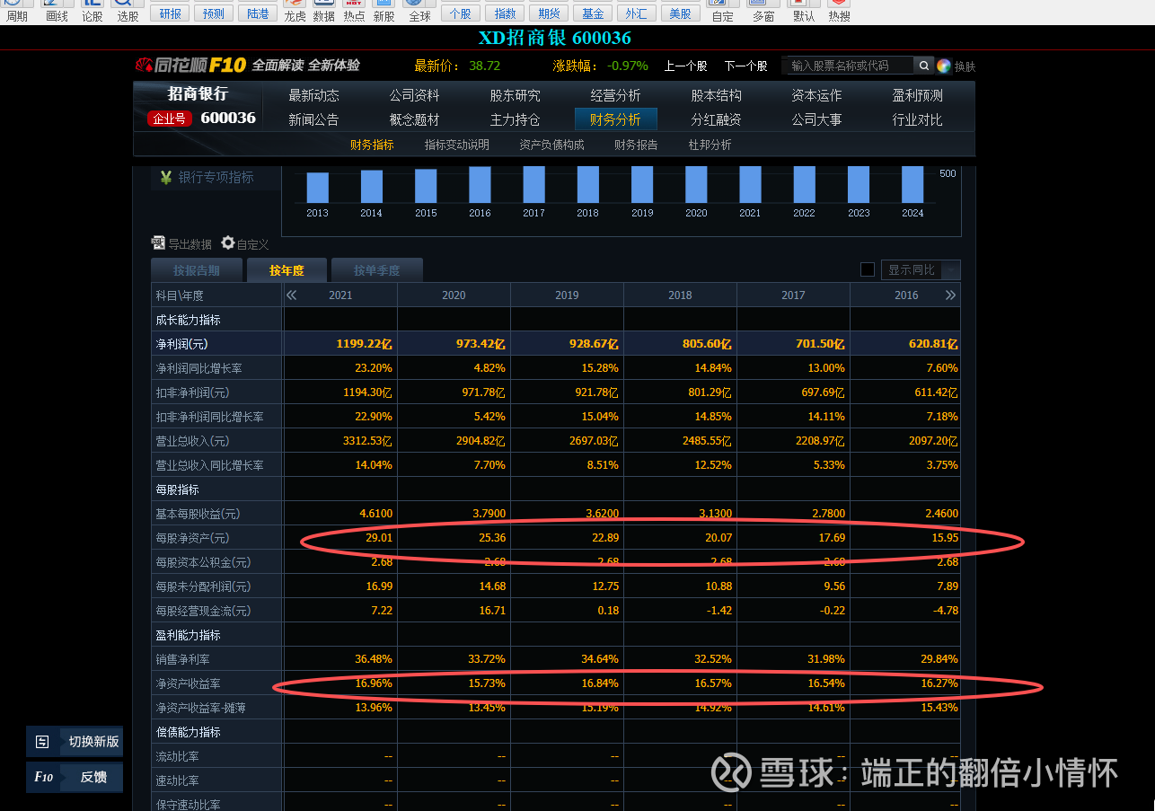 当然也有优秀的例子比如招商银行16年以后roe持续稳定净资产稳步提高
