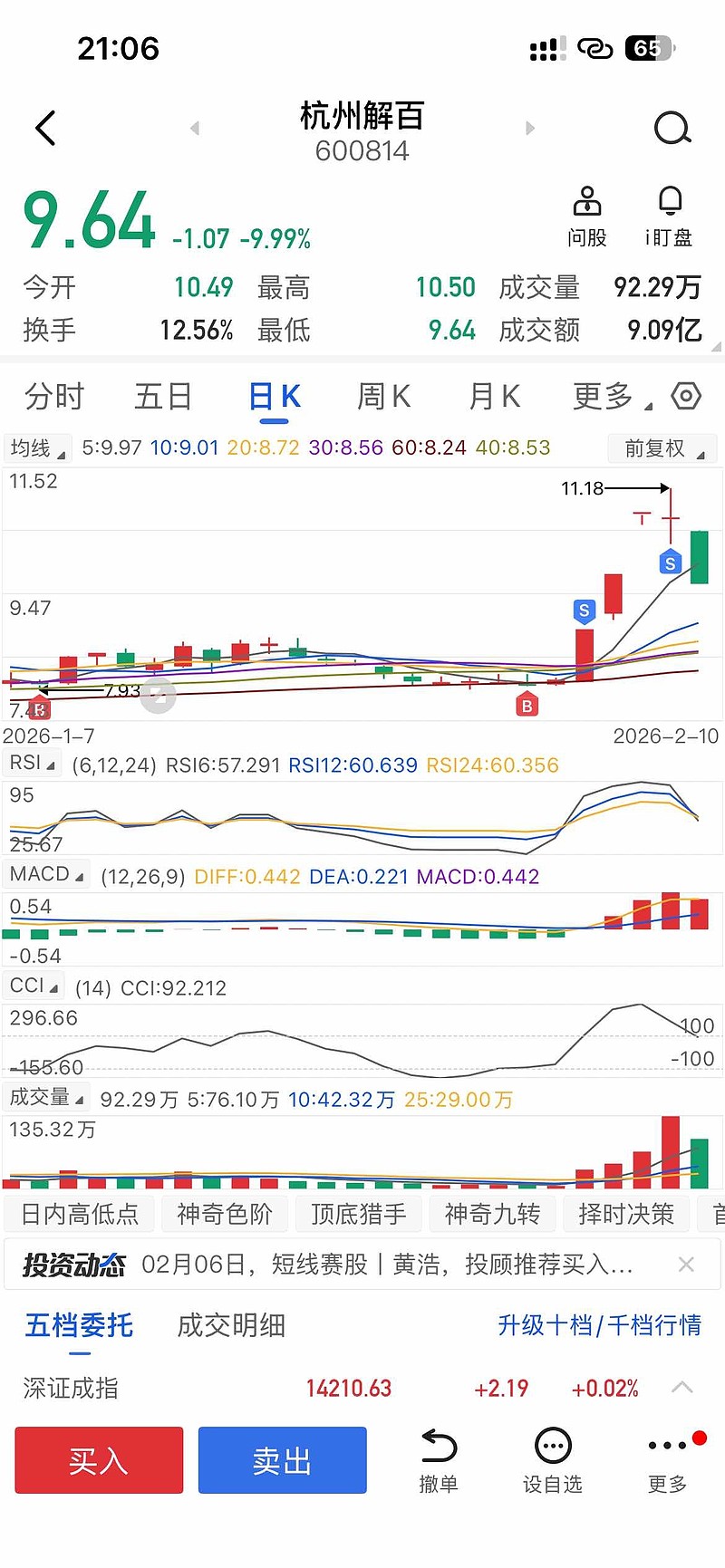 $杭州解百(SH600814)$