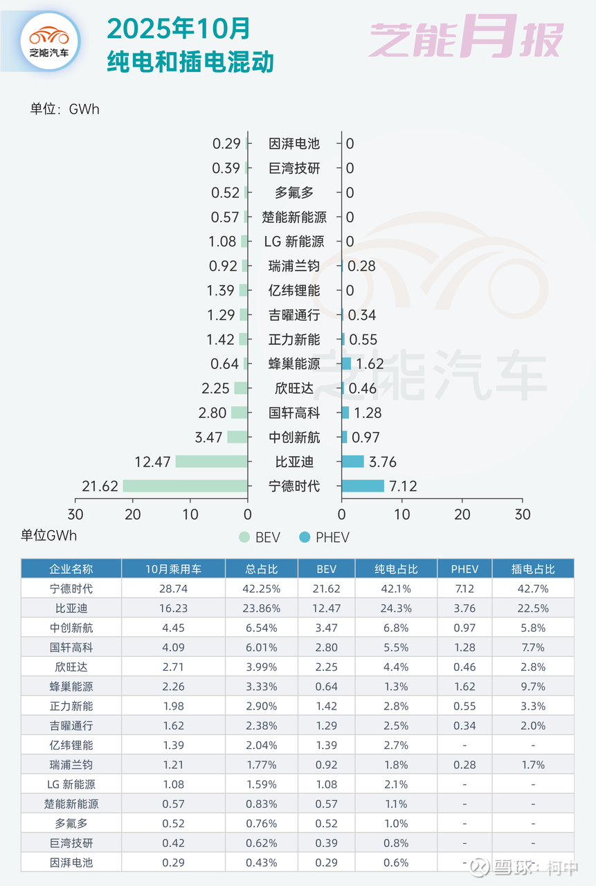 看下面这张图就能看明白了,现在插电混动的电池装机占比非常的少。虽然看上去销量并不低,但是单车带电量却很低,所以用量少。