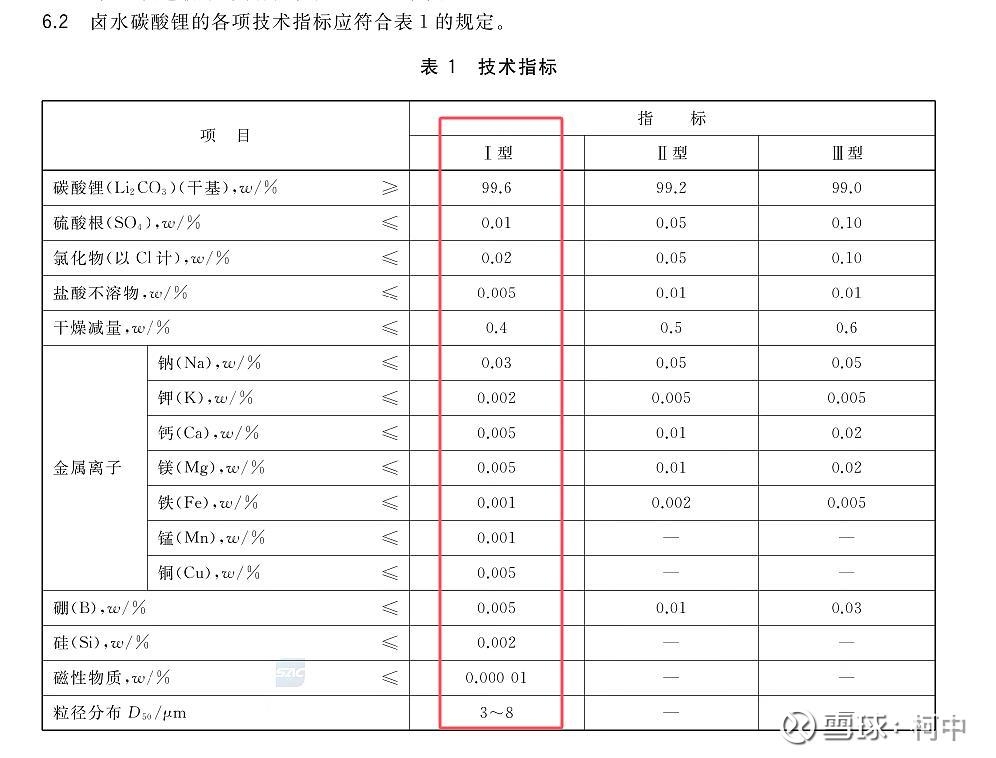 而盐湖股份的电池级碳酸锂是符合I型卤水碳酸锂GB/T 23853-2022要求,要求如下: