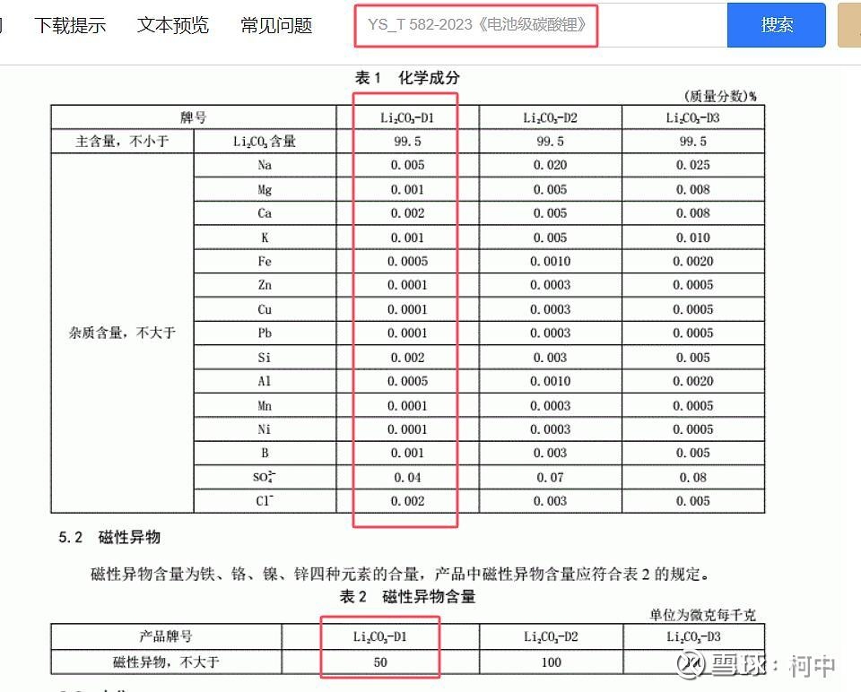 我们在看看最新的电池级碳酸锂D1型YS/T 582-2023的要求。见下图: