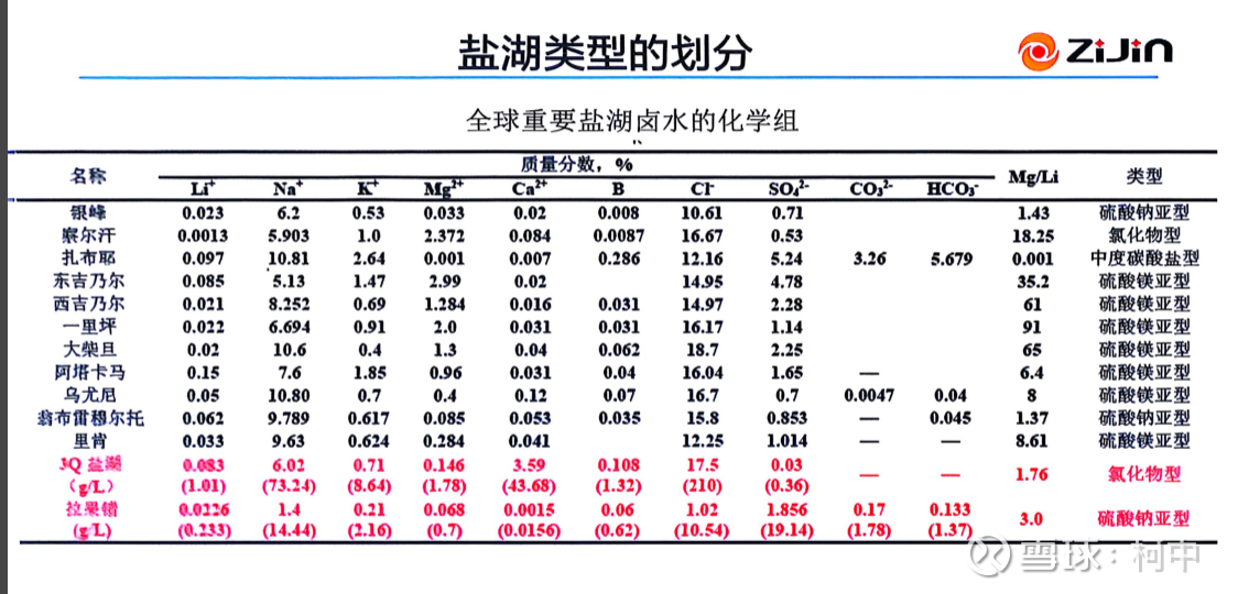 这个是主要盐湖的化学组和杂质的比,初始杂质越少,肯定越好提纯。