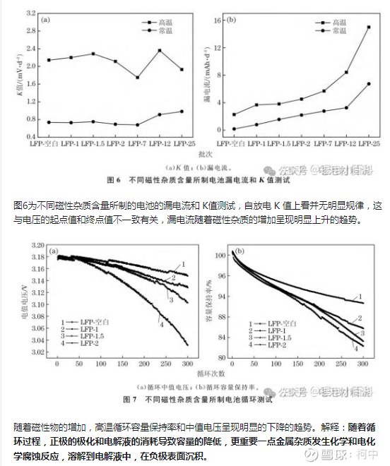 2. 高温和常温下的容量保持率、容量恢复率显著降低(如磁性杂质含量≥12 ppm时,下降趋势加剧)。