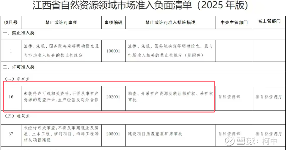 已经很明显了,实际上在2025年4月24日,国家就发布过市场准入的负面清单,这次是江西省自己发的自然资源领域的准入负面清单,意义更明显一点。以后想乱来,可能会更难了。配合最近宜春的瓷土矿注销,相当于组合拳了。把以前遗留的一些漏洞都补上,那么就不存在擦边球一说了。
