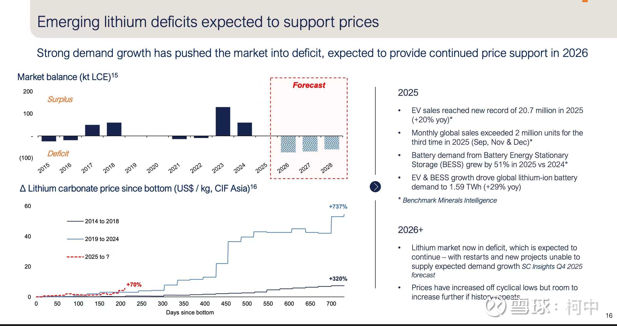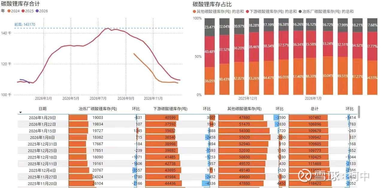 怎么理解这个,就是比如说以前一年消耗50w吨碳酸锂,库存5w吨,比例就是10%,大概是旺季4-6周的量,而需求到上一轮80-100w吨的时候,还是10w吨库存,就还是10%的量,而这一轮目前今年的需求已经是200-210w吨的量,还是10w吨库存,那就只有5%的比例了,对于旺季的时候,只够几天的量,这种库存量比得出过剩的结论,只能说是屁股决定了脑容量。