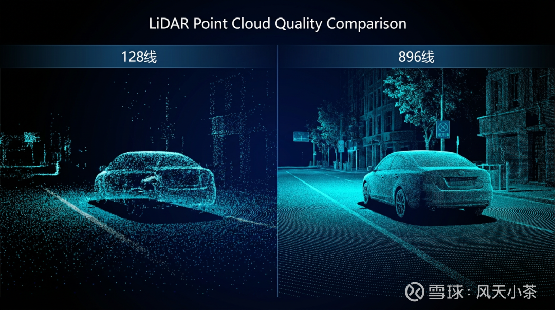 传统激光雷达,无论128线还是300线,其输出结果被称为“点云”——由无数离散的、稀疏的点构成的环境轮廓。它更像一个高度精确的“素描”,能勾勒出物体的大致形状和距离,但缺乏细节。 而华为乾崑的896线激光雷达,其核心突破在于“图像级”。这意味着它生成的点云密度极高,足以构建出堪比摄像头画面的细节和置信度,实现了从“素描”到“高清3D照片”的跃迁。 这一跃迁带来了两个根本性改变: