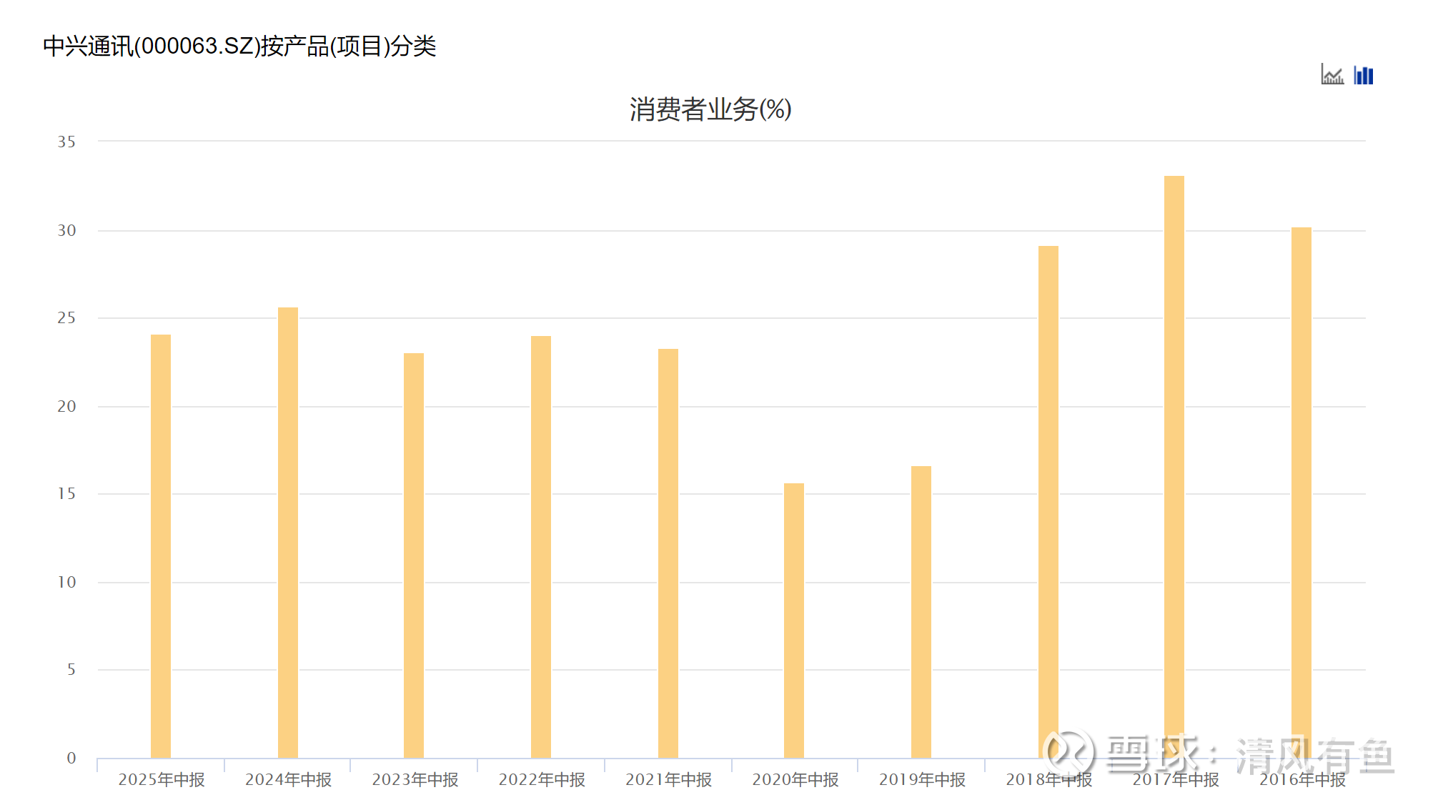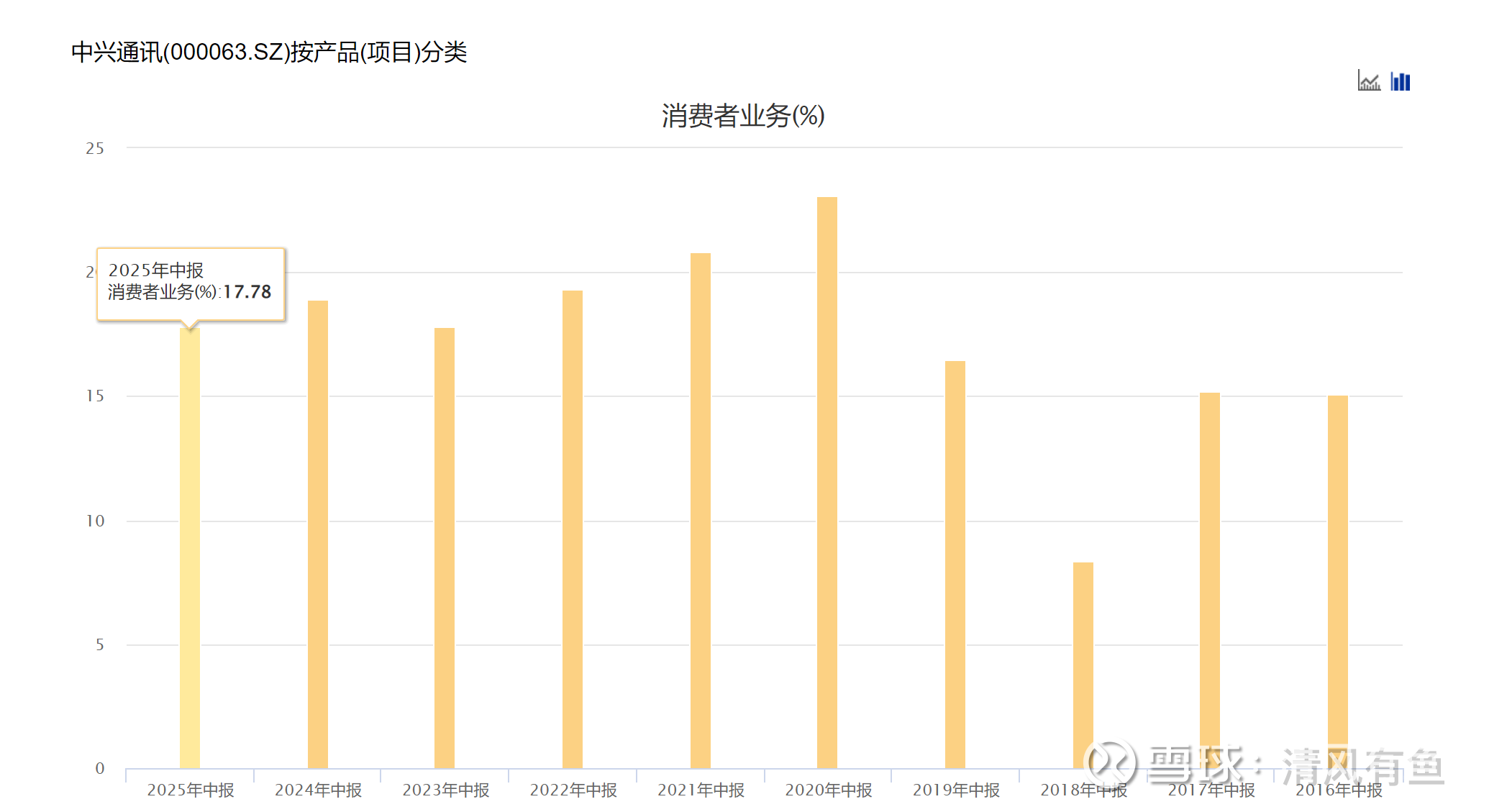 我没有去详细阅读半年报,起码目前就财务反馈的这个状况,人工智能的蓬勃发展,根本挽救不了中兴通讯在通信主业周期性下行的时候报表。。政企业务的增长超100%,利润占比还从去年的7.9%下滑到了6.86%,反而消费者业务保持定力,稳中有升。可惜,中兴的消费者业务在国内真不够看,也只能维持住当下的局面。。。