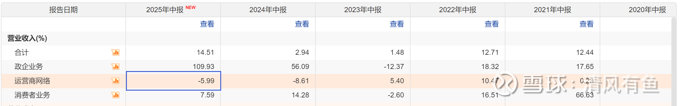 仔细拆分一下,就知道是为什么了政企业务,去年还有毛利率21.77%,到了今年中报就只有8.27%了。