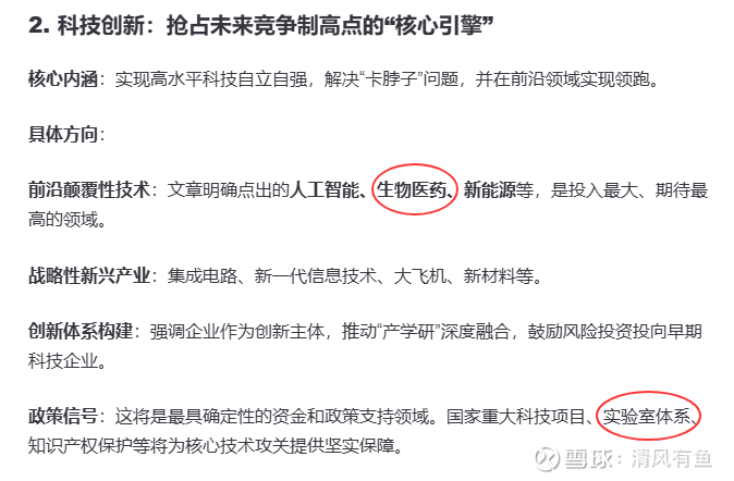 前沿颠覆性技术:文章明确点出的人工智能、生物医药、新能源等,是投入最大、期待最高的领域。
