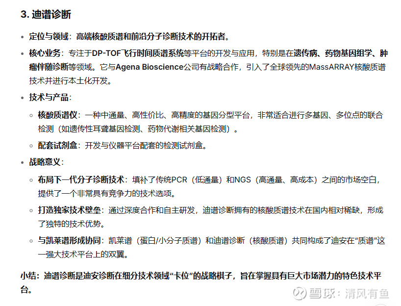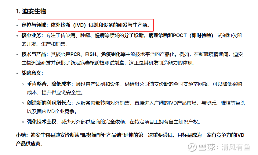 至于这个领域,不是只有芯片才是科技,生物技术就不是科技了吗?虽然,迪安的主业是ICL,不是典型的生物科技公司,但是其与生物医药的发展有着千丝万缕的关系!其本身是生物科技的应用者,同时又是创新药的支撑者之一,尤其是AI赋能生物医药后,其进一步朝向两端依靠AI+数据赋能生物科技赋能创新药!