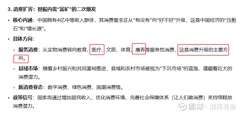 政策信号:国家将通过增加居民收入、优化消费环境、完善社会保障体系(让人们敢消费)来持续释放消费潜力。