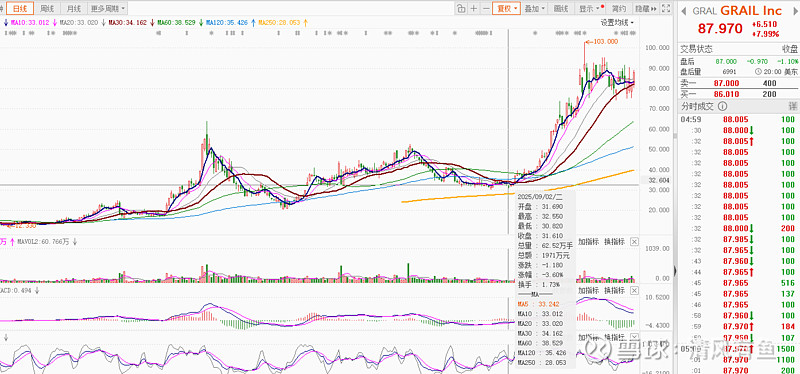 $Grail(GRAL)$ 真是九月看到其快速上行。。。去年巨亏20亿美金,今年补血后,继续狂欢。。虽然迪安诊断不是专门从事癌症早筛产品为主业的!但是,癌症早筛是精准医学的基础,可以说未来是国家大力推动的方向,从源头解决问花费的成本绝对比事后解决付出代价小。。迪安在癌症早筛的上游设备、试剂领域有布局,如何利用自身天然的检测优势(病患)与各大头部三甲的合作(LDT),最终打造产学研一体化,助力自身产业链一体化癌症早筛核心地位!在这个领域,绝对是ivd企业兵家必争的,且极大的可能是未来的超级增长点。。看看上游的龙头雅培和罗氏。。。比起纯靠烧钱的那些企业,迪安本身就是癌症诊断的一环,本身有充足的现金流坐保障,且布局广泛,成则百尺竿头更进一步,没有产业化本身也没有任何损失!!还好,海外巨头没有办法轻易进行并购,不然迪安真是暴标的呀!!!