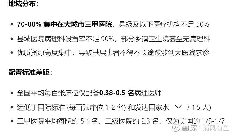就拿医疗行业的病理领域来说,截止24年注册医生大概2.1万人,大部分集中在三甲医院,基层是极度缺乏!