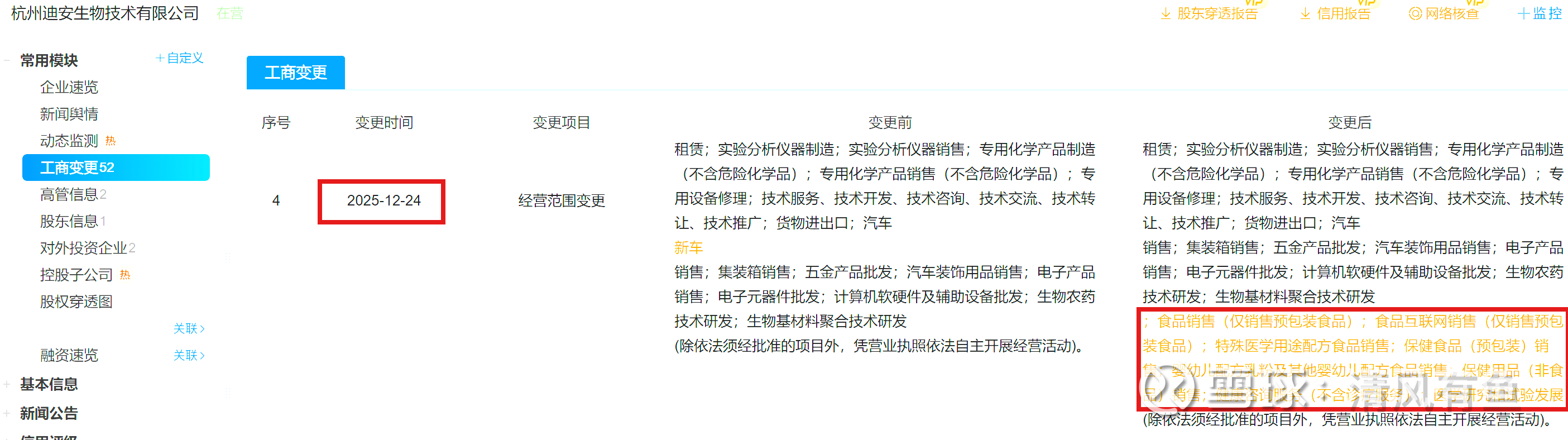 从迪安生物(迪安诊断子公司)这一系列工商变更来看,其战略意图非常明显,是在构建一个从医疗器械、诊断产品到药品、特医食品、健康服务的“大健康生态闭环”,体现了从传统诊断服务商向全病程健康管理综合服务商的转型野心。具体分析如下: