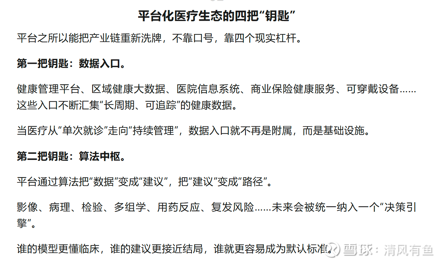 但如果把视线拉长到十年尺度,你会发现一个更危险的变量正在抬头——它不直接砍价,却可能改写游戏规则:平台化医疗生态。