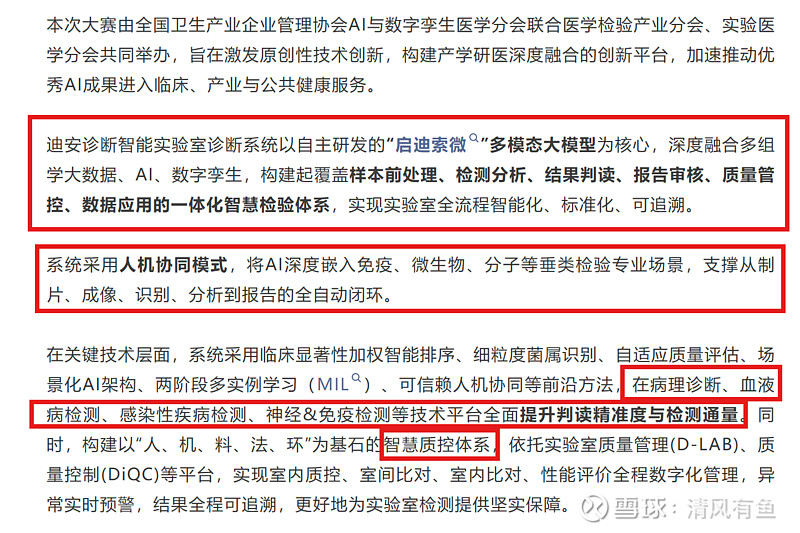 在此基础上,公司以自研“启迪索微”多模态大模型为核心引擎,在抗核抗体检测、梅毒三项检测、流式细胞分析、病理语音取材、病原识别与宏基因组测序协同等关键检验场景,实现全流程AI赋能与规模化落地应用,全面提升实验室检测效率与诊断精准度。