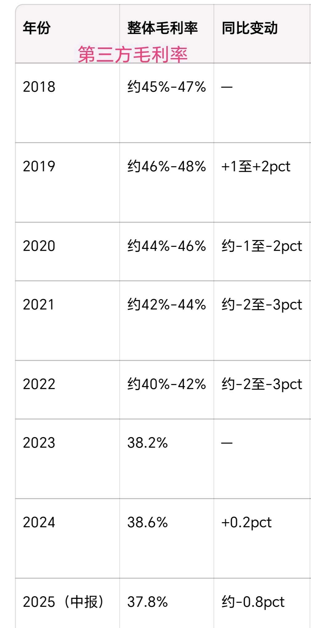 第三方采购毛利率从2018年的45-47%降低到37.8%,那么综合起来就是关联交易,第三方交易的毛利率都在下降。