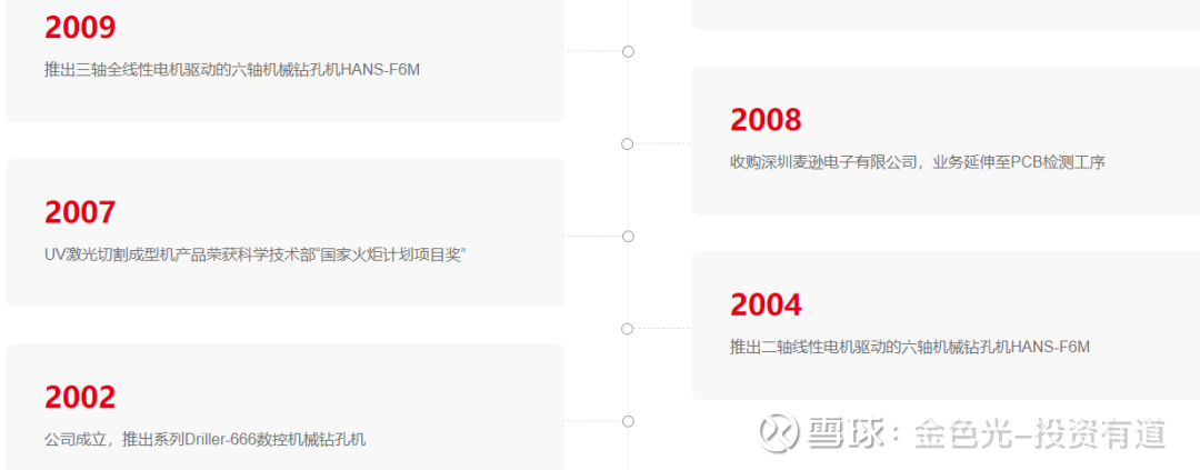 港股招股书显示,大族数控2004年推出六轴机械钻孔机HANS-F6,2009年推出六轴机械钻孔机HANS-F6M。但大族数控官网“发展历程”栏目显示,大族数控于2004年推出HANS-F6M。
