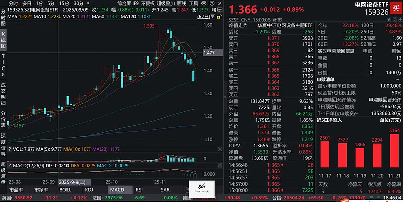 目前特变电工是这只行业基的第一大权重股,虽然该基份额还很小,但是最近20个交易日有19天是净流入状态,也就是说即便是股价大幅回撤也有资金在持续买入。