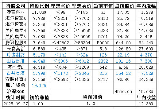 长春高新受集采影响大,属于高科技行业,技术变化快;海尔智家、美的集团、凌霄泵业海外业务占比大,受美国加征关税影响大;山西汾酒、古井贡酒受国内经济和白酒行业周期影响大。所以可能波波对这些公司的业绩和估值出现非常大的误判。