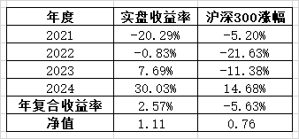 注2:沪深300指数涨幅未包含每年约2%分红,年复合收益率略有低估。