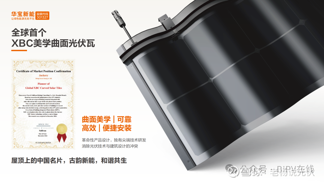 从技术突破到行业引领,华宝新能的创新始终锚定“能源向善”的初心。此次美学曲面光伏瓦登榜《时代》,不仅是一款产品的胜利,更印证了“技术、人文与自然平衡共赢”的绿色发展路径——当光伏与建筑共生,可持续未来便有了更温暖的表达。