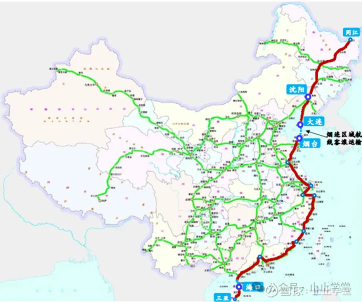 烟连区域航线是渤海湾最为重要、最为成熟的航线,是沈海高速公路的海上连接段。沈海高速公路是国道主干线 “五纵七横”中最长一纵“同三线”的一部分,现为国家高速公路统一规划中的 沈阳至海口路线,是唯一一条贯通中国东南沿海地区的高速公路,在我国东部沿海南北运输通道中具有重要的作用。