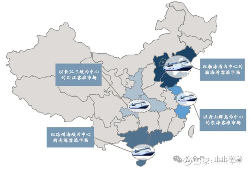 因为天然的地理因素,我国形成了4个客滚船运输市场。以渤海湾为中心的渤海湾客滚运输市场,以琼州海峡为中心的南海客滚运输市场,以杭州湾为中心的东海客滚运输市场和以长江三峡为中心的川江客滚运输市场。