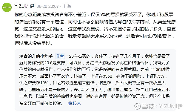 19.28时给一位贴友的回复,短短2个月伊之密也许已经是他高攀不起的股了。市场参与者至少有6成是同样的心态,这是常年1赢9亏的根源。