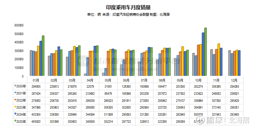 2025年1-10月,印度汽车零售销量完成445.98万辆,同比增长3.6%,上年同期增长6.5%。分车型看,乘用车零售销量357.84万辆,同比增长3.6%,上年同期增长7.9%;商用车零售销量88.14万辆,同比增长3.6%,上年同期增长0.9%。