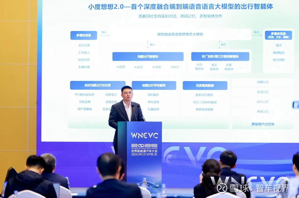 9月28日,在此次大会『AI赋能汽车软硬件融合创新』专题论坛上,百度地图事业部总经理谢天发表主旨演讲,分享了百度地图在汽车智能化方向的思考与创新实践,并发布了百度地图全新升级的出行智能体-小度想想2.0。他表示:“汽车智能化的竞争,已经从传统的“车载语音助手”,进化为真正具备理解、推理和行动能力的 AI智能体。车里的智能,不再只是一个对话工具,而是一个能理解你、能服务你的伙伴,智能体大规模上车的爆发点已经到来!”