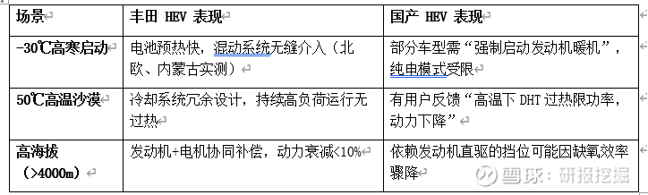 从上表,我们看出丰田无论在故障率和维修成本方面都远远超过国产HEV。接下来,我们看下对极端环境的适应率。
