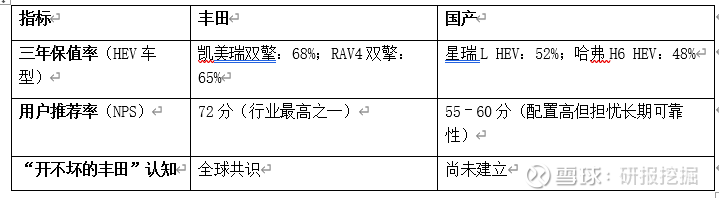 从上表看,国产HEV仍需努力。最后,我们看下用户口碑和保值率。