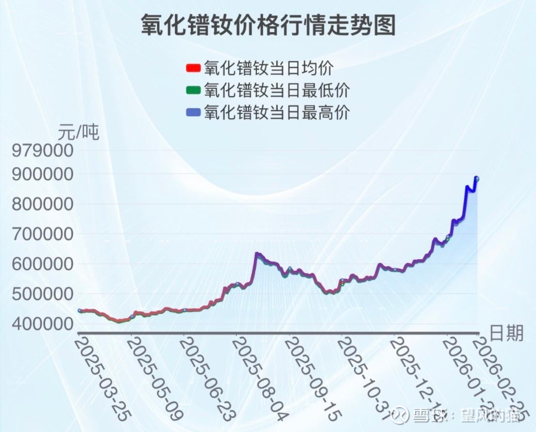 自去年四月开始,稀土价格重回上行通道。以氧化镨钕为例,从当时的40万元/吨,到今天88万元/吨,涨幅已超1倍。