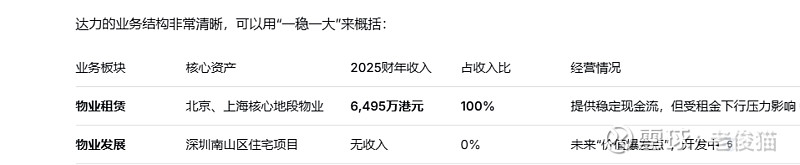 2025财年亏损主因:亏损主要来自投资物业公平值减少(即资产减值)约1.15亿港元,以及租金收入的小幅下滑。受内地房地产市场情绪低迷影响,北京、上海两地物业的评估价值有所下降