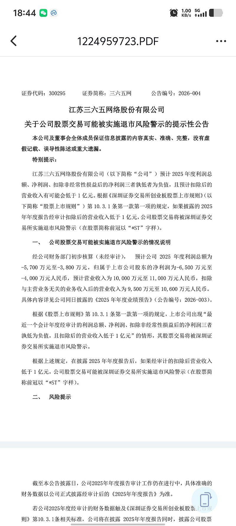 白天好心说了好几次,不知道有没有帮助到别人,因为我昨天买入之后,看到业绩明显就是要被ST预警,吓得我昨天一晚上都在刷公告,唯恐今天会被跌停。