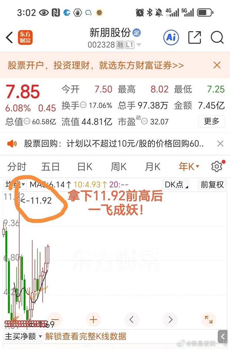 懂了,目标是新高,11.92/7.85=1.51,希望这次真的可以出起来吧
