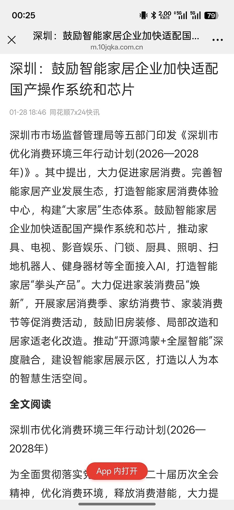 1、深圳新政加码智家国产化,#明确鼓励智能家居企业加快适配国产操作系统与芯片。涂鸦智能作为总部位于深圳的全球IoT云平台龙头,已率先完成鸿蒙、OpenHarmony及多款国产芯片平台的深度适配,#本地政策红利直接转化为订单与技术先发优势。