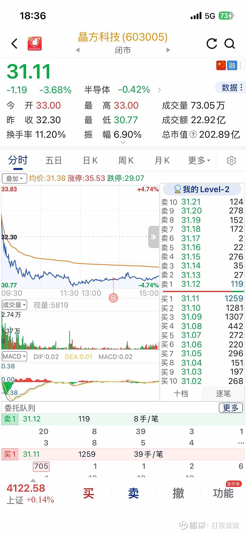 半导芯片概念己走出来了,真的找不到性价比很高了只能将就。今天调整下来的小晶方介入,希望节前有好收益