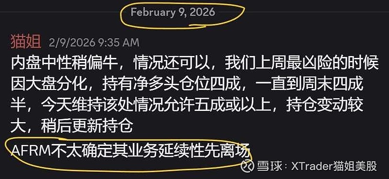 $AFRM 2月9日笨猫中期仓位离场,到今天为止又下跌了22%左右。目前下跌动能比较衰竭了,左侧下降通道中。那时有小伙伴果断离场,避免了损失。