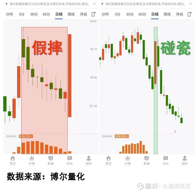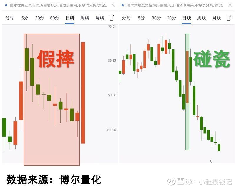 看这两只股票的走势对比:左边那只经历大幅调整后强势反弹,右边那只看似反弹却继续下跌。表面看都是阳线收复失地,结果却天差地别。