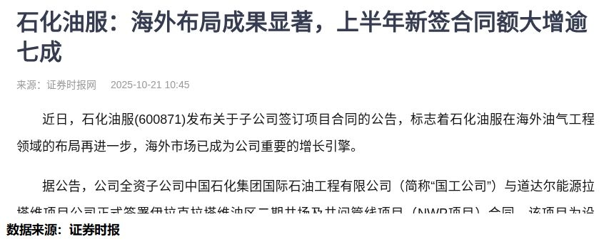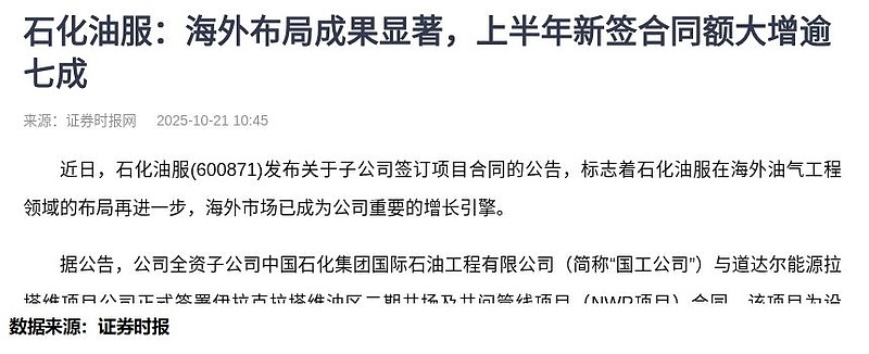 石化油服25亿中东大单刷屏时,我正在翻交易数据